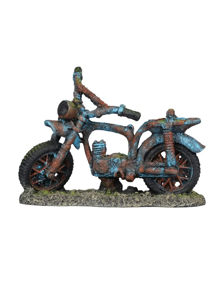 De Crossly, voor de motorliefhebbers onder ons. Een motor welke al enkele jaren onvindbaar op de bodem van diepe wateren staat te vereeuwen. Dit ornament is gemaakt van Polyresin, 100% gifvrij en uiterst geschikt voor zoet- en zeewateraquaria. Het biologisch evenwicht van de vis zal niet beinvloed worden. Kleurveranderingen zijn na enige tijd niet uit te sluiten.