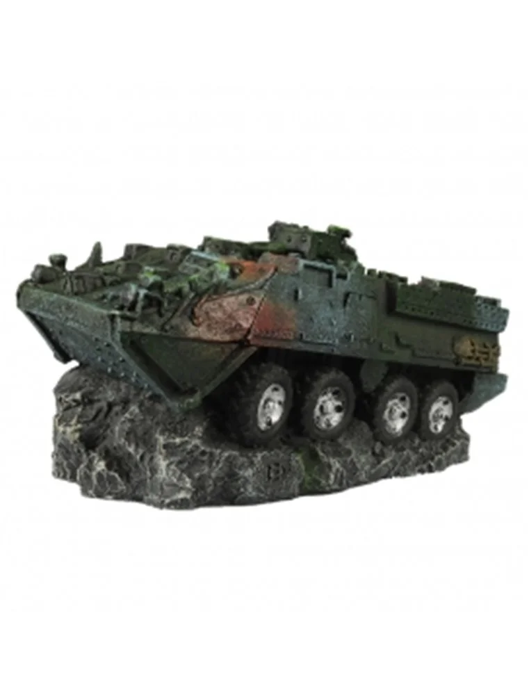 Deze leger tank is een natuurgetrouw weergegeven decoratie van Aqua Della en is gemaakt van polyesterhars. Deze is absoluut gifvrij en heeft geen invloed op het biologisch evenwicht van je aquarium. De decoratie is geschikt voor zowel zoet- als zout water aquariums. Tip: Neem de decoratie voorzichtig uit de doos en spoel af met warm water. Let op: geen zeep, allesreinigers of andere schoonmaakmiddelen (bv waterstofperoxide, thinner, terpentijn) gebruiken.
