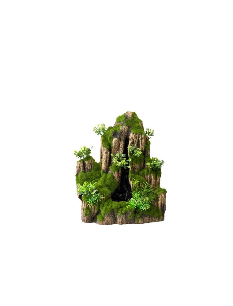 Deze natuurgetrouw weergegeven decoratie van EBI is gemaakt van polyesterhars. De waterval Moss Rock is gebaseerd op natuurlijke rotsen, gecombineerd met kunststof planten en mossen. Deze is absoluut gifvrij en heeft geen invloed op het biologisch evenwicht van je aquarium. De decoratie is geschikt voor zowel zoet- als zout water aquariums. De waterval werkt op kwartszand, deze wordt geactiveerd met de luchtpomp. Dit cre?rt een prachtig effect. Beide artikelen worden mee geleverd met het aquarium decoratie. Geschikt voor kleine tot middelgrote aquariums.