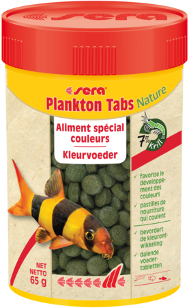 sera Plankton Tabs Nature is het kleurvoeder zonder kleur- en conserveermiddelen in tabletvorm. De behoedzaam geproduceerde voedertabs zijn geschikt voor alle van de bodem etende vissen (bijv. meervallen, modderkruipers) en ongewervelde dieren in zoet- en zeewater.