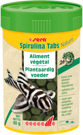 sera Spirulina Tabs Nature is het plantaardige voeder gemaakt van zelfklevende tabletten, hetwelk geen kleur- en conserveermiddelen bevat. Het is ideaal voor overwegend herbivore vissen en ongewervelde dieren in zoet- en zeewater.