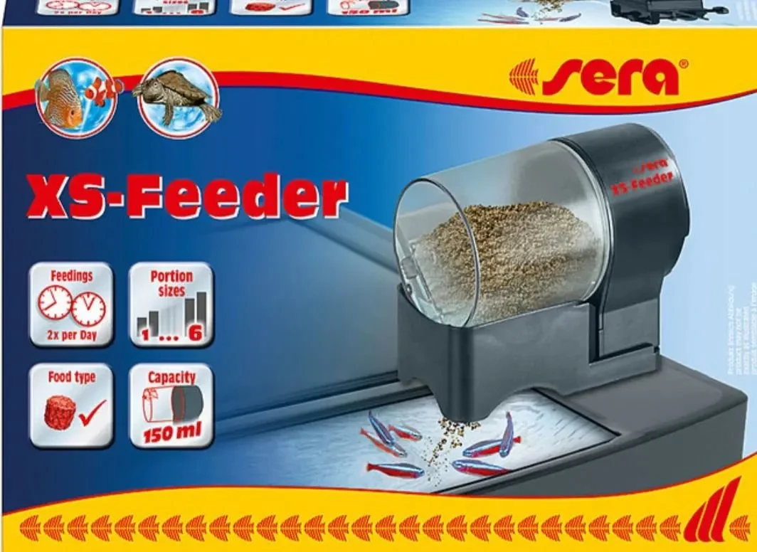 De Sera XS voederautomaat heeft een capaciteit van 150 ml granulaat en maakt tot twee keer per dag voeden mogelijk.